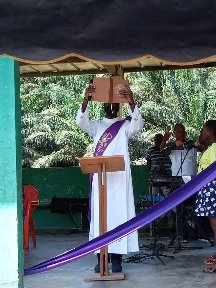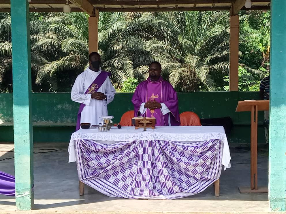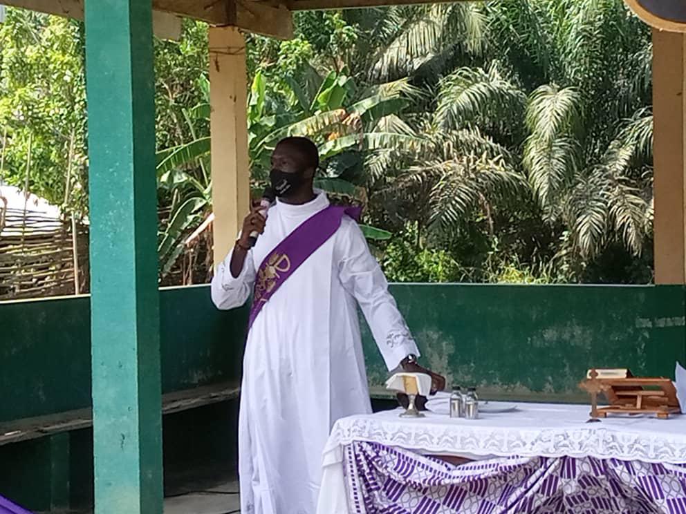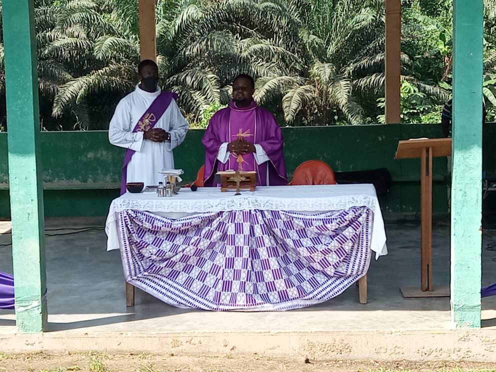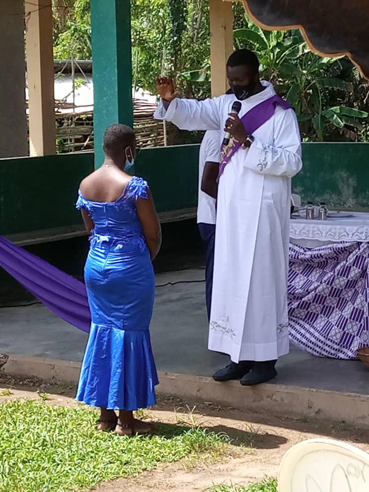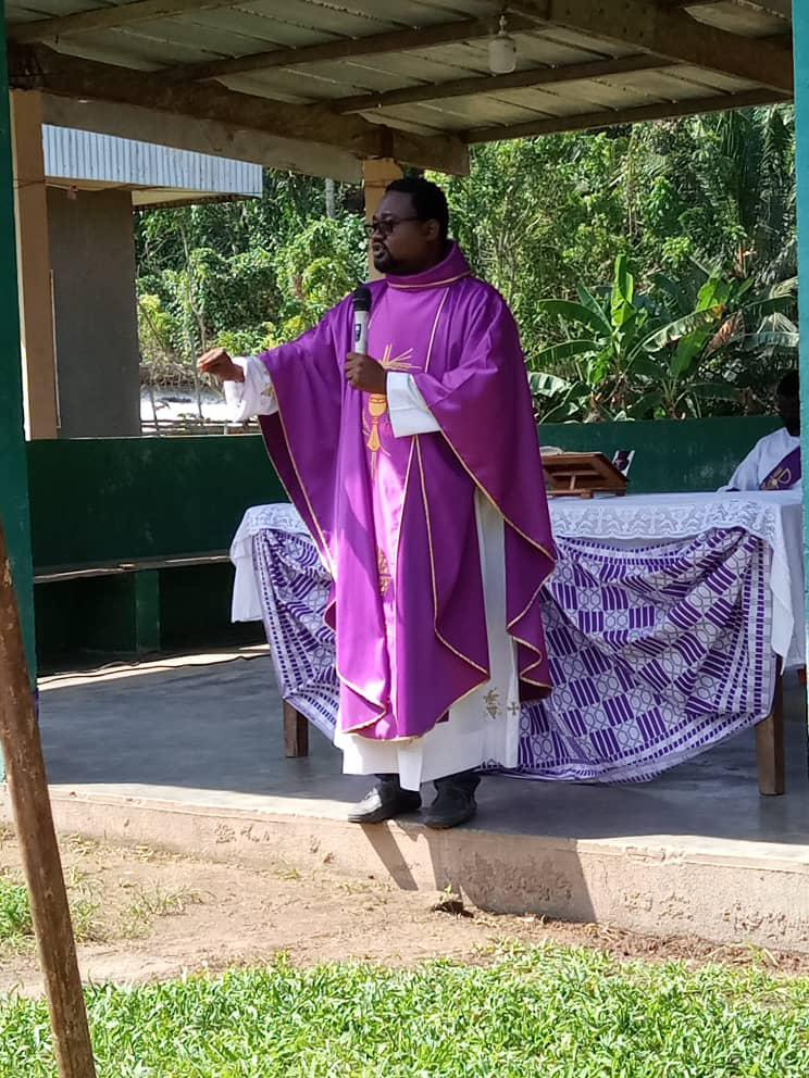 Dans le cadre de la mission au peuple initiée par les Pères Stigmatins de la paroisse St Joseph Époux d'Ayamé une équipe s'est rendu dans le village de Amoakro: Village situé sur l'axe Aboisso -Ayamé a quelques kilomètres du barrage..