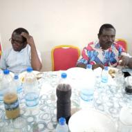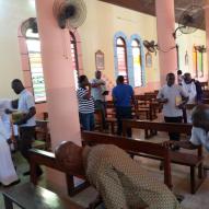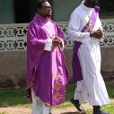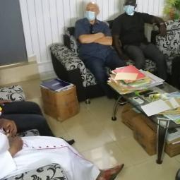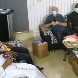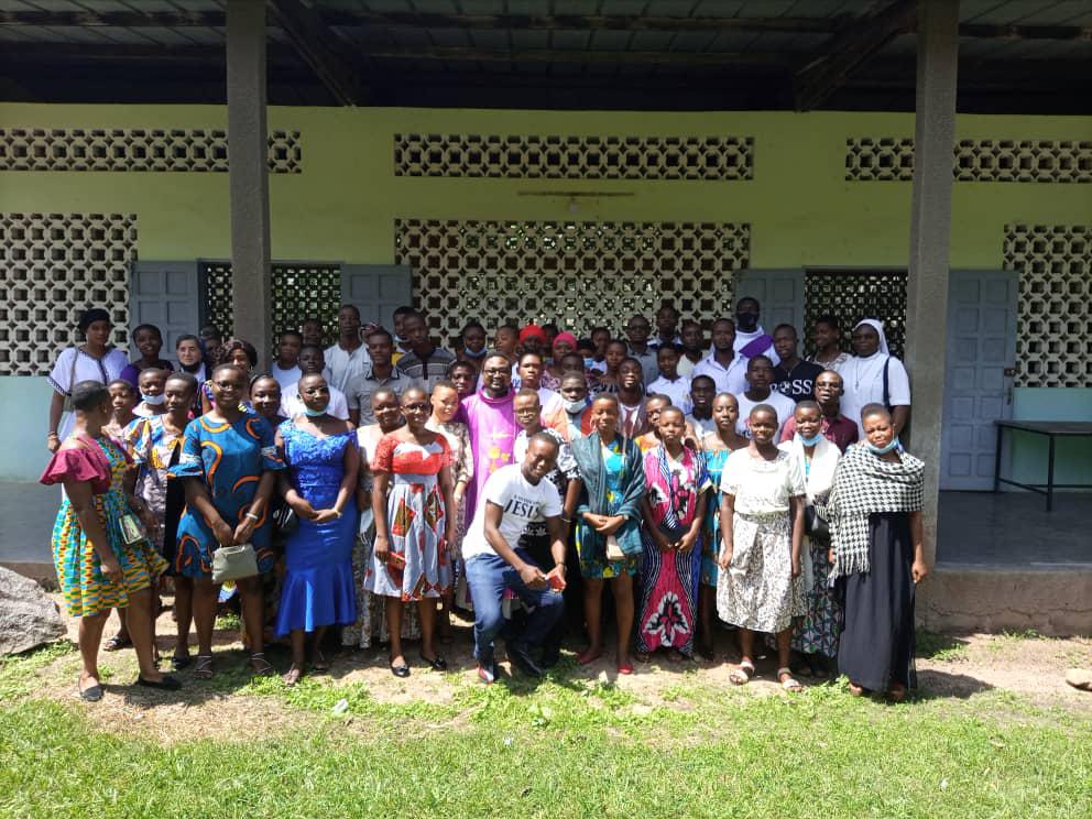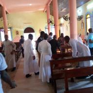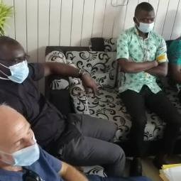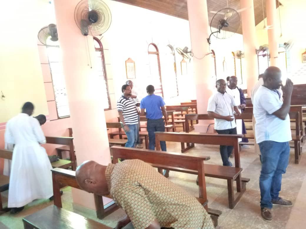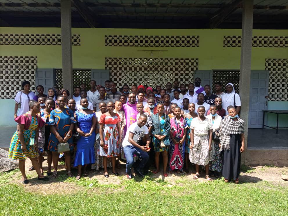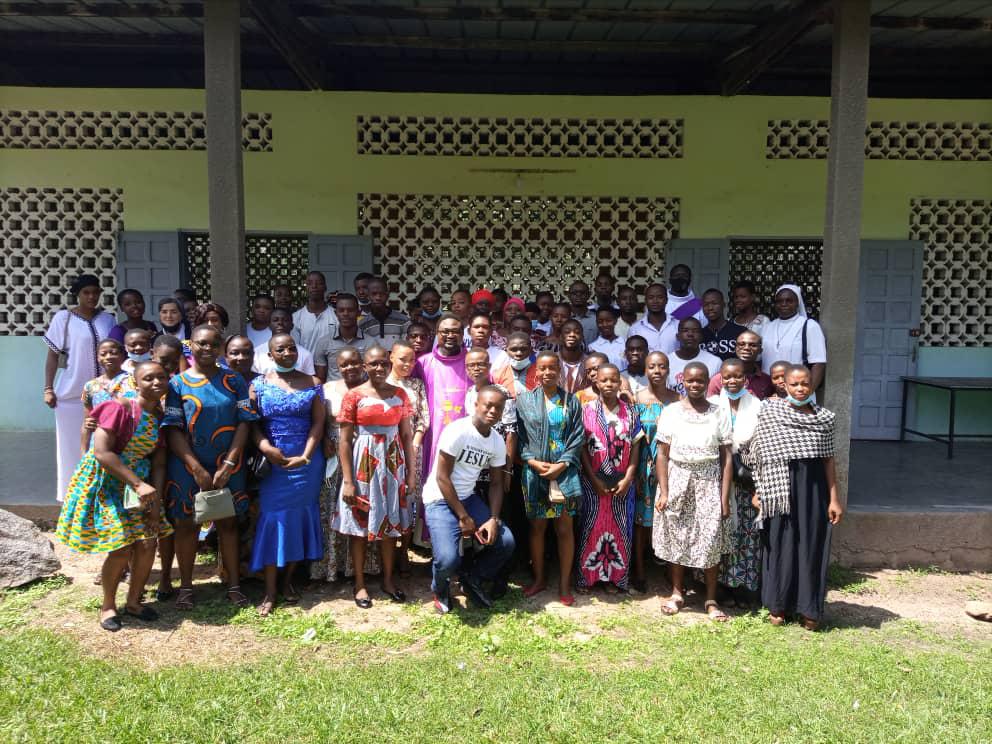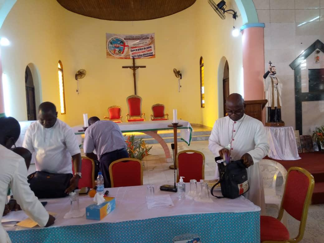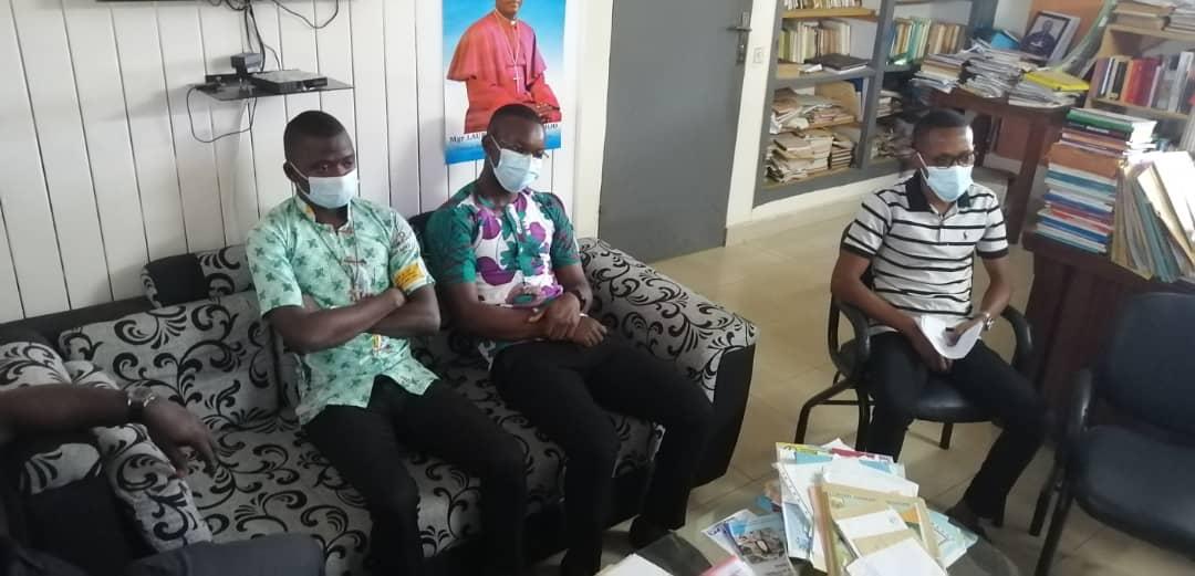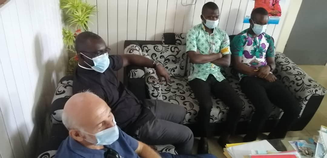 Rencontre entre notre très cher père évêque monseigneur Raymond, le vicaire général, le secrétaire de l'évêque et les agents pastoraux des secteurs Maferé-Aboisso. Lundi 23 novembre à St François Xavier d'Aboisso.